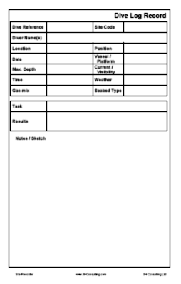 The main purpose of an archaeological dive log is to get a record of any work done underwater on a wreck site. The form is similar to a log for sports diving but is different as the emphasis is on writing down what was achieved and what was seen. The aim is to write down everything that was done or was seen as often you don’t know what details are important until later on.